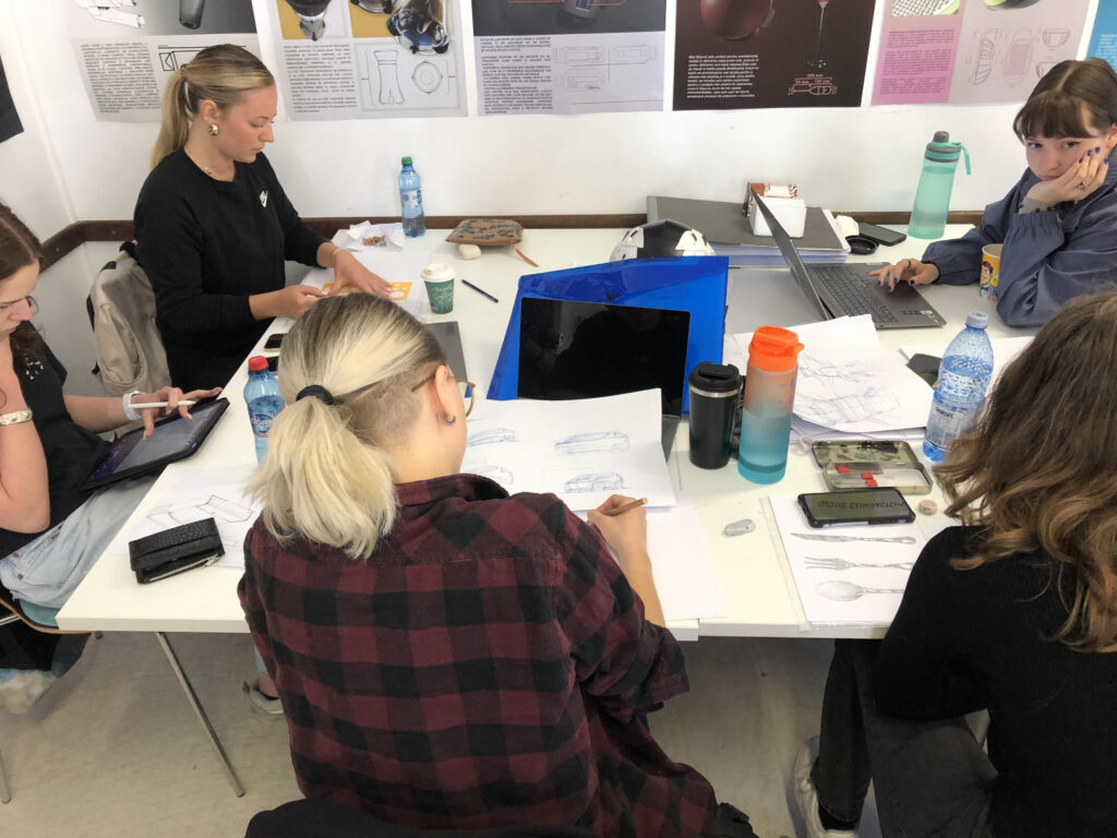 Alumnas dibujando prototipos de productos