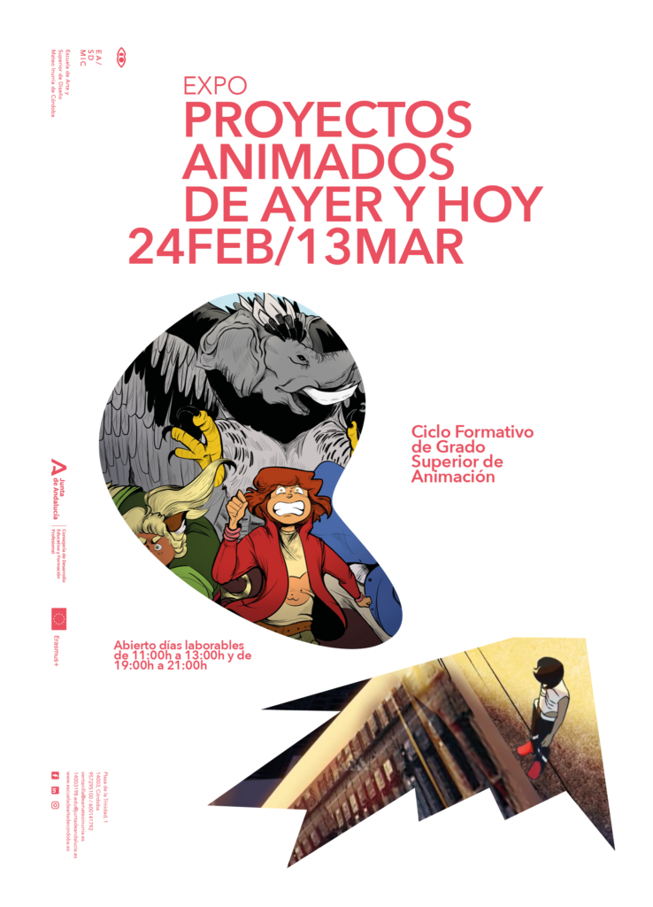 La exposición PROYECTOS ANIMADOS DE AYER Y HOY reúne una selección de Proyectos Integrados del alumnado del CFGS de Animación de la EASD Mateo Inurria junto a trabajos desarrollados con posterioridad en contextos profesionales o independientes. El conjunto ofrece una mirada transversal al tránsito entre el ámbito formativo y el ejercicio profesional, mostrando no solo resultados finales, sino también los procesos que los hacen posibles.